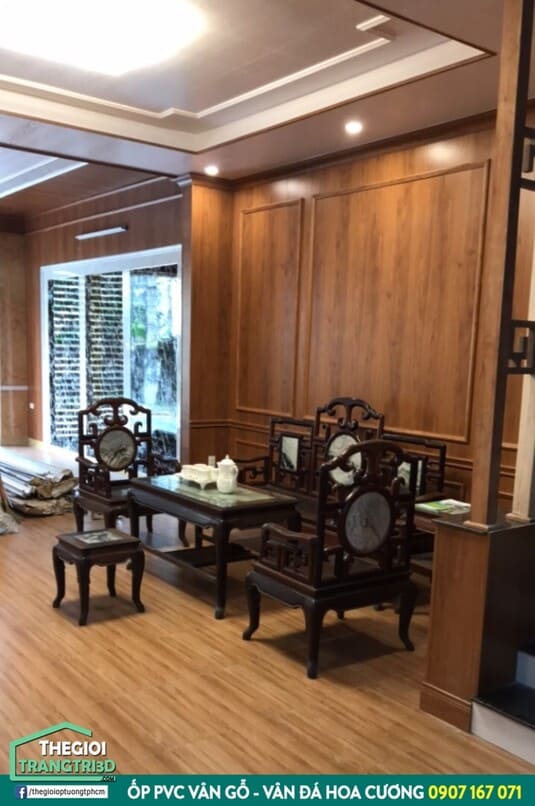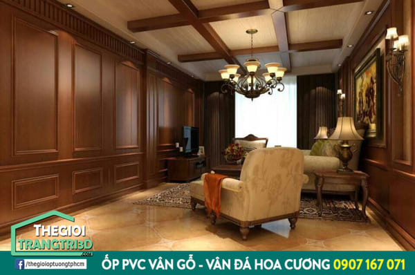 Tương tự như các sản phẩm ốp PVC ở trên, ốp vân gỗ có nhiều ưu điểm. Tấm ốp có thể được ứng dụng ốp tường, ốp trần nhà, ốp cột gỗ… Gia chủ cũng không cần lo vấn để ẩm mốc hay mối mọt như khi sử dụng ốp gỗ thông thường.
