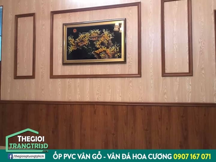 KẾT HỢP ỐP PVC VÀ PHÀO CHỈ KHUNG TƯỜNG