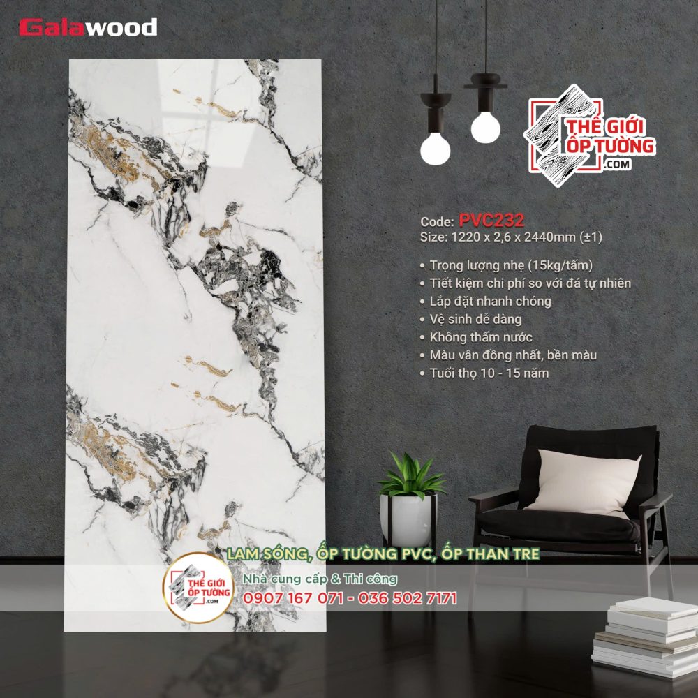 Tấm ốp tường nhựa PVC vân đá GALAWOOD 232